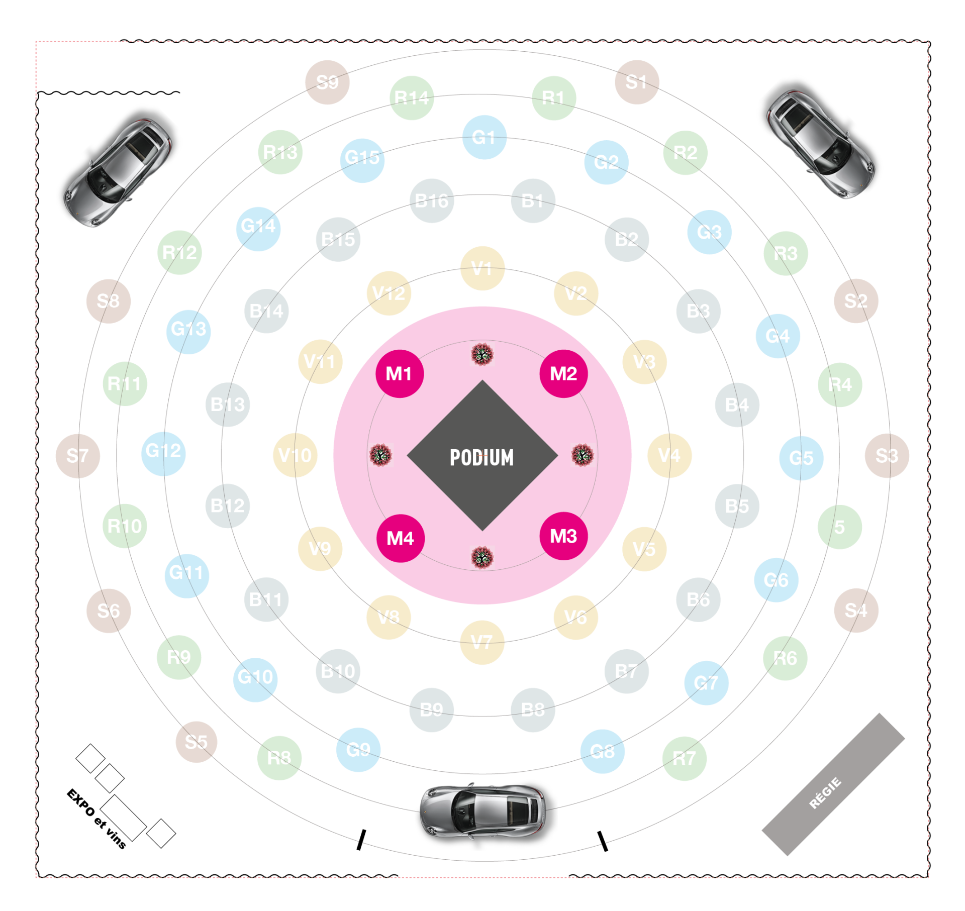 - matériel d’exposition** (vitrines, véhicules...)